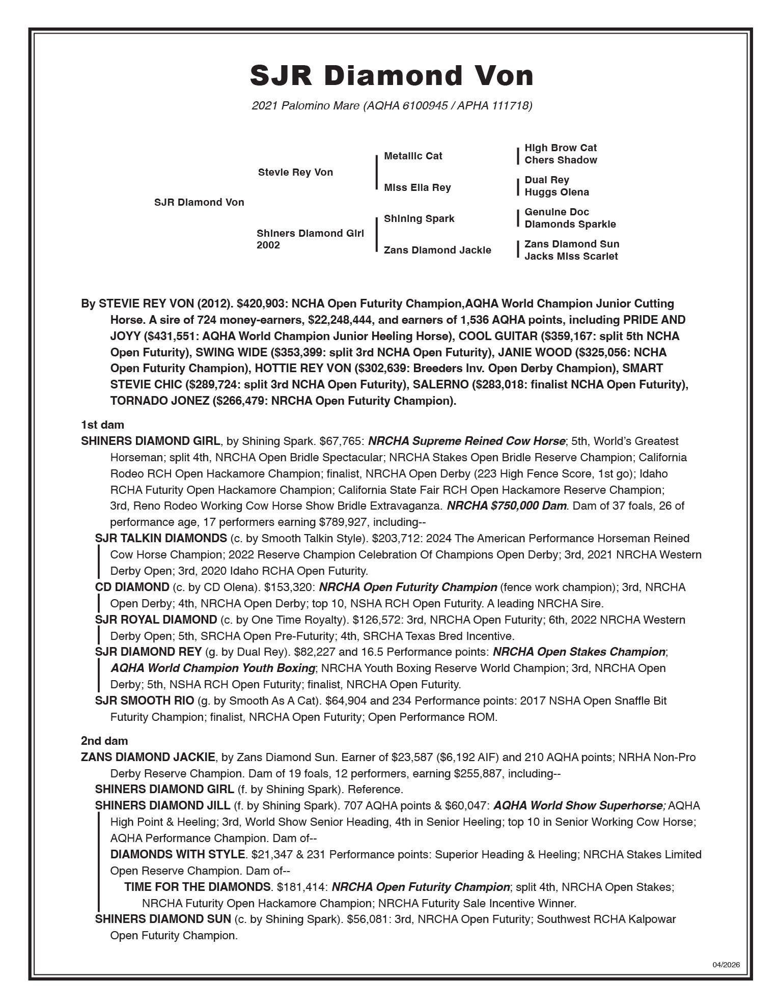 SJR TALKIN DIAMONDS FOALS